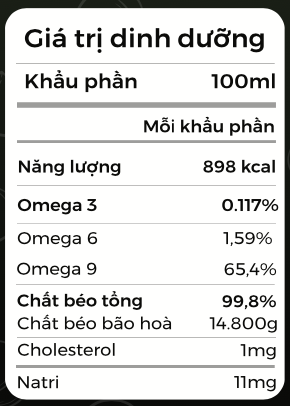 1.Hàm lượng axit béo không bão hòa đơn cao: